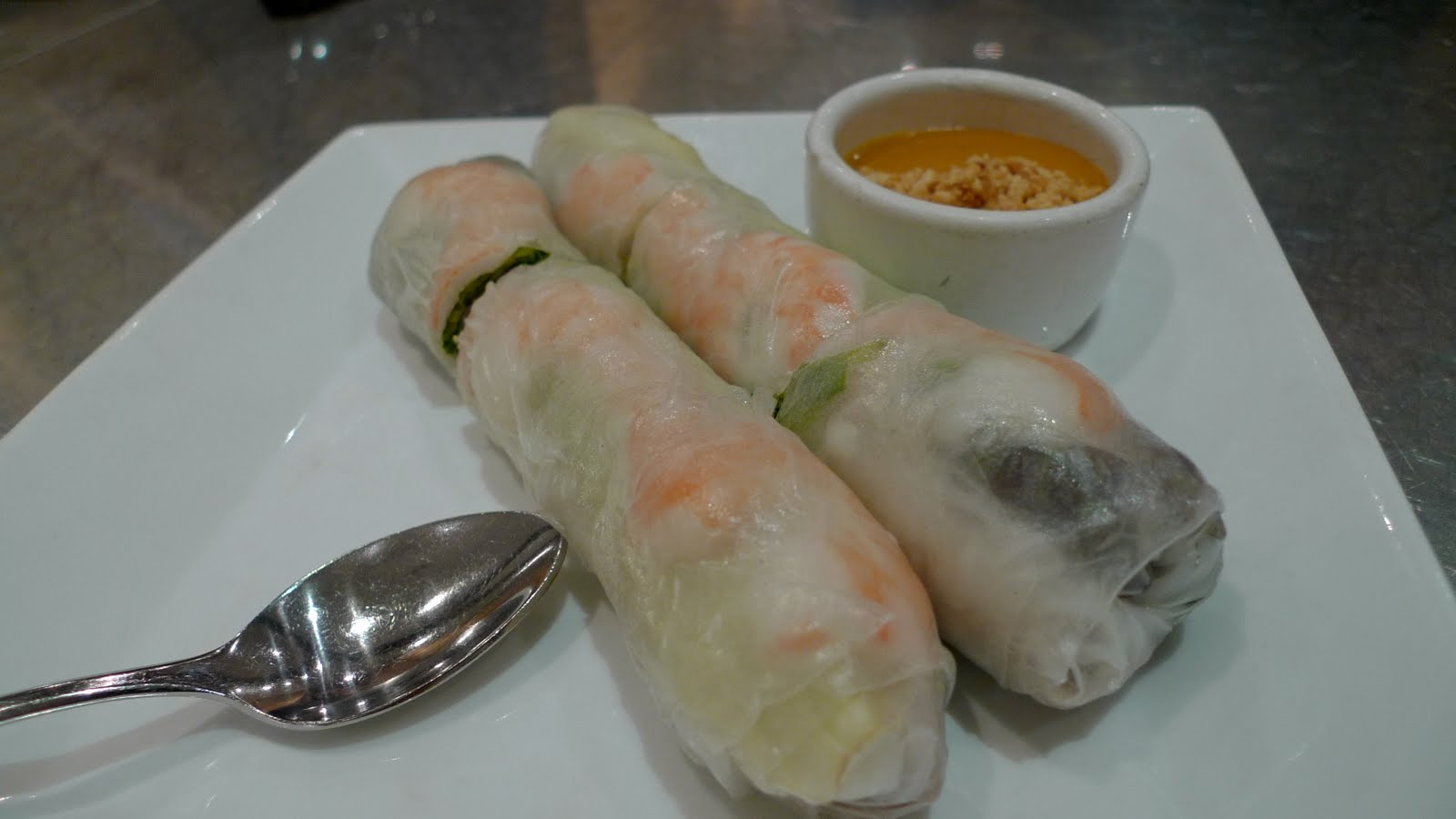 Vietnamese fresh spring rolls. This is low fat and healthy. The sauce was good too. It tasted like a sate sauce with peanuts....perfect as a snack or an appetizer.